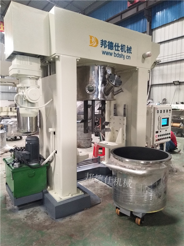 龍門架式行星動力混合機(jī)/多功能行星攪拌機(jī)是一種無死點的混合、攪拌、分散設(shè)備。此設(shè)備集行星機(jī)、強(qiáng)力分散機(jī)功能于一體,采用獨特攪拌機(jī)構(gòu),下料桶固定不動;分散盤、攪拌槳實現(xiàn)既公轉(zhuǎn)又自轉(zhuǎn)的行星運動,其速度可調(diào)頻變速。使物料作復(fù)雜運動,受到強(qiáng)烈的剪切、攪拌和搓合,物料得以充分混合和破碎。在釜內(nèi)設(shè)計了自動刮壁、刮底結(jié)構(gòu),將粘附著釜壁上的物料刮下繼續(xù)混合,不會出現(xiàn)混合死角。設(shè)備密封獨特,可加壓或抽真空去氣泡等。您可以提出您所需要的處理量、設(shè)備形式、規(guī)格要求或您需要加工的物料的性質(zhì),邦德仕的銷售工程師會提供讓您滿意的方案。